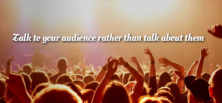 O público é a razão de você estar lá. As apresentações profissionais são sempre sobre algum tópico importante que é muito importante para o público. Inclua o público na apresentação – fale com eles e não sobre eles. Faça-lhes perguntas e convide sua opinião. Você quer que eles se envolvam apenas no tópico da discussão, não tenha medo de cortá-los educadamente se eles tentarem desviar a conversa.